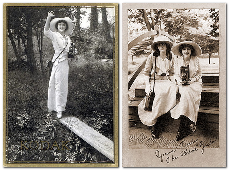 Слева — рекламная фотография из фирменного каталога, 1914 г. Справа — рекламная фотография 1911 (1913?) года. Надпись на фотографии: «Искренне Ваши. Кодак-девушки» (Yours Truly. The Kodak Girls).