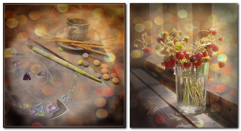 где R – расстояние до плоскости наводки объектива, d — диаметр круга нерезкости, D — диаметр зрачка объектива, f — фокусное расстояние. Из полученных формул хорошо видна тенденция, — чем меньше величина поправки к единице в знаменателе, тем ближе будут значения R, R1 и R2. Очевидно, что при заданных значениях R и d поправки будут тем меньше, чем больше произведение D·f. Следовательно, для получения малой глубины резко изображаемого пространства предпочтительны объективы, у которых произведение D·f максимально. Этому требованию, например, удовлетворяют объективы, предназначенные для портретной съемки (фокусное расстояние до 140 мм, минимальное диафрагменное число 2 или 2,8). Но хорошие результаты вполне достижимы и с многоцелевыми объективами с фокусным расстоянием 50 — 70 мм, поскольку чаще всего требуется не минимальная, а вполне определенная глубина резко изображаемого пространства. Художественное оформление боке в профессиональной фотографииОписанная выше техника художественного оформление боке применяется профессиональными фотографами, хотя и не так уж часто (см. например, [4]). Несколько примеров приведено на рис. 17. Мы также настоятельно рекомендуем ознакомиться с подборкой прекрасно выполненных работ [16].